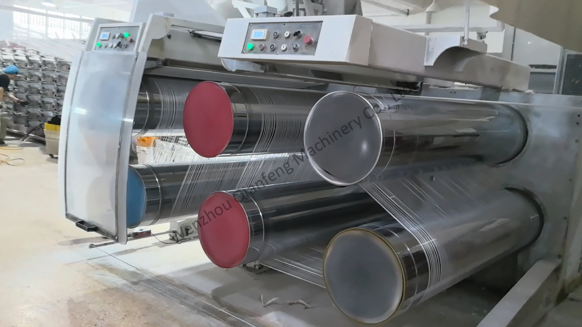 This machine uses PP or HDPE as raw material and produces flat yarn through processes of heating, extruding, stretching, and winding. The final yarn is suitable for use on circular looms for woven bag production.